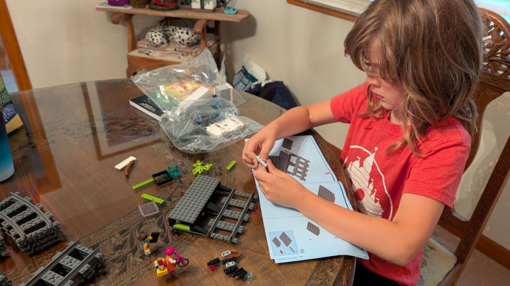 I love him so much, and I’m so proud of him. He stayed home today, even though it was the first day of Y Camp. We got doordash for lunch, and he had to work off his excess energy by vacuuming (this was entirely his decision, I don’t know why he did it). We did presents after work and he wanted to go to Friendly’s for dinner and dessert rather than do a cake at home. After all that, we worked on his new Lego set – a City set with an electric train! We didn’t finish, but we got the locomotive running, which was pretty exciting.