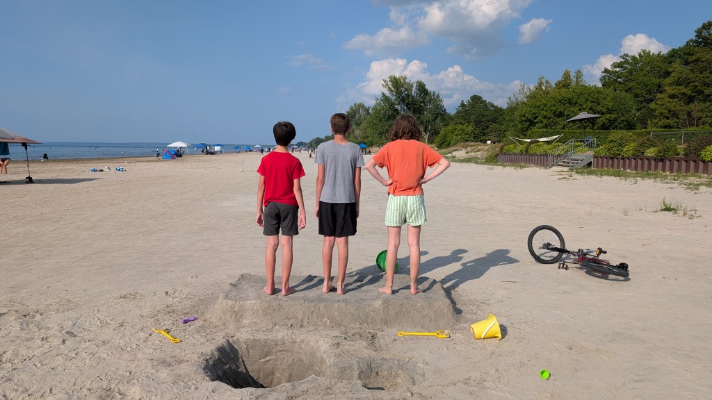 Every year we go to Wasaga Beach in Ontario, and it’s my favorite vacation. I sit outside, read books, and don’t worry about the kids drowning (it’s very shallow and they’re all very good swimmers).