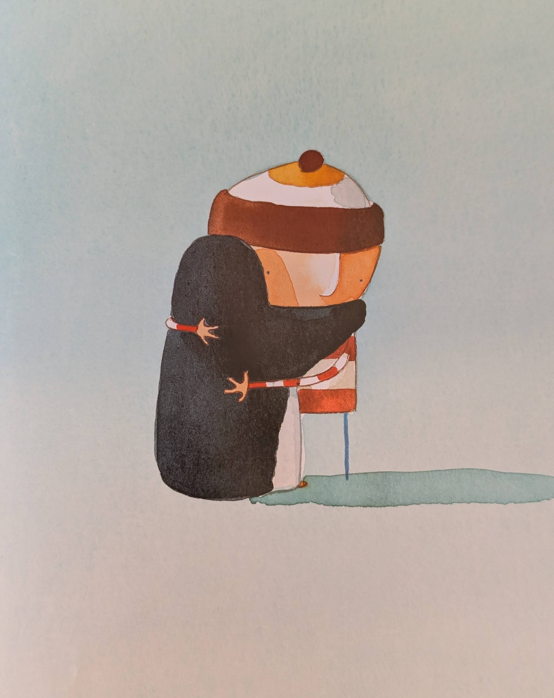 Here you can see the boy and the penguin, best friends. What I love about this story, beside some pretty funny wordplay right at the end, is that their friendship demonstrates how two beings can enjoy doing everything together, but it’s also ok to try things separately. Even if, and maybe especially if, they don’t work out. It’s important not to judge each other, and simply to be present.